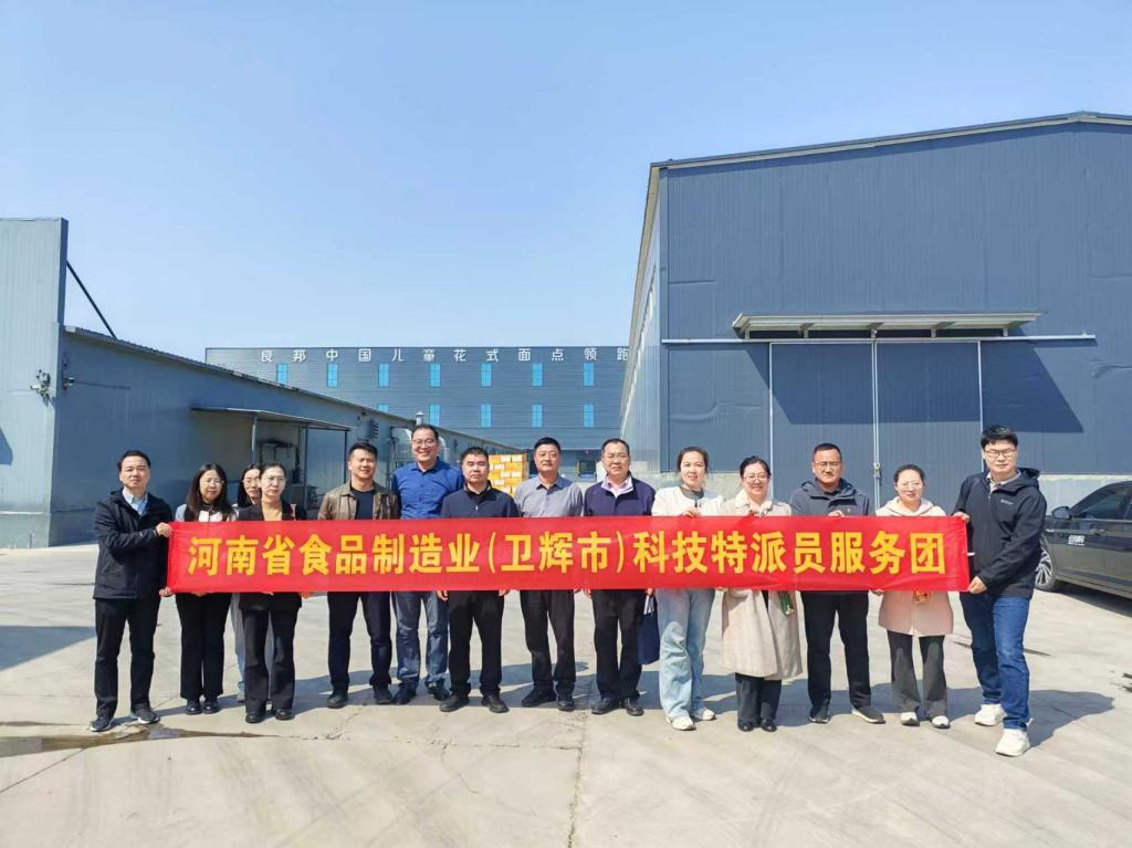 2026年3月31日,生物工程学院食品加工及相关专业教师10人,随同卫辉市科技局相关领导,代表服务团赴新乡市东良裕田食品有限公司开展实地调研和专项技术服务。围绕企业核心产品儿童花馍的技术攻关、产品研发及品质检测等实际需求展开深度对接。