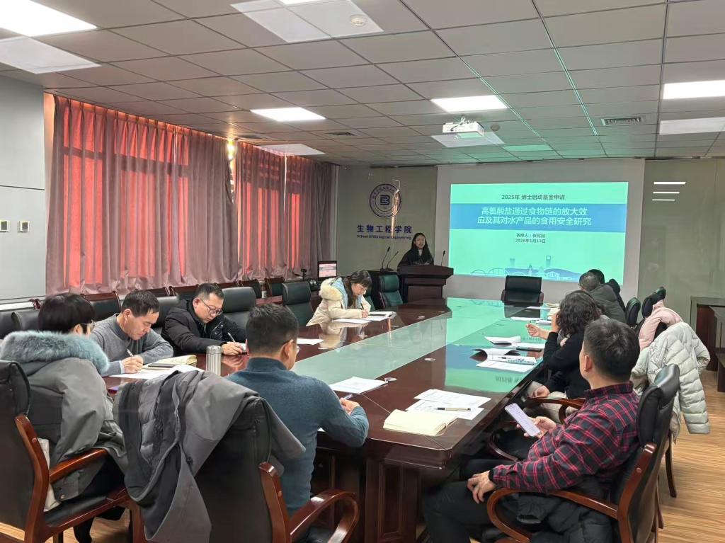 根据工作安排,2026年1月13日下午,生物工程学院在A13#五楼会议室召开学术分委员会会议,对蒋兆景、董天宇等6名新进博士的科研启动项目进行了论证。
