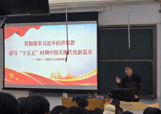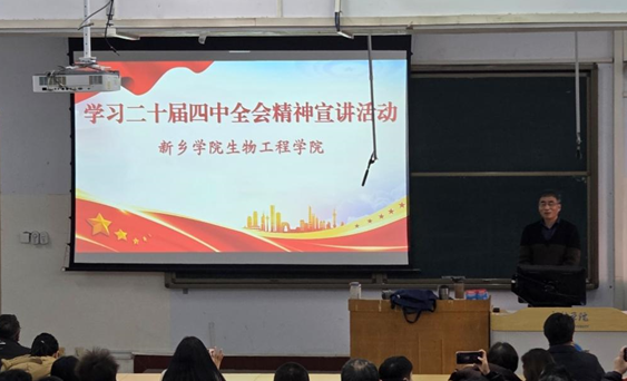 12月23日下午,生物工程学院在A01-119教室举办学习党的二十届四中全会精神宣讲会,宣讲会邀请校级宣讲团成员万庆博士做专题报告,学院全体教职工参会。