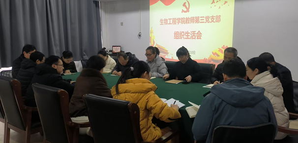 3月10日,生物工程学院教师第三党支部在A13三楼会议室召开2025年度组织生活会和民主评议党员工作会议。会议由党支部书记王小洁同志主持,学院党委组织委员张艳芳同志出席,党支部全体党员参会。